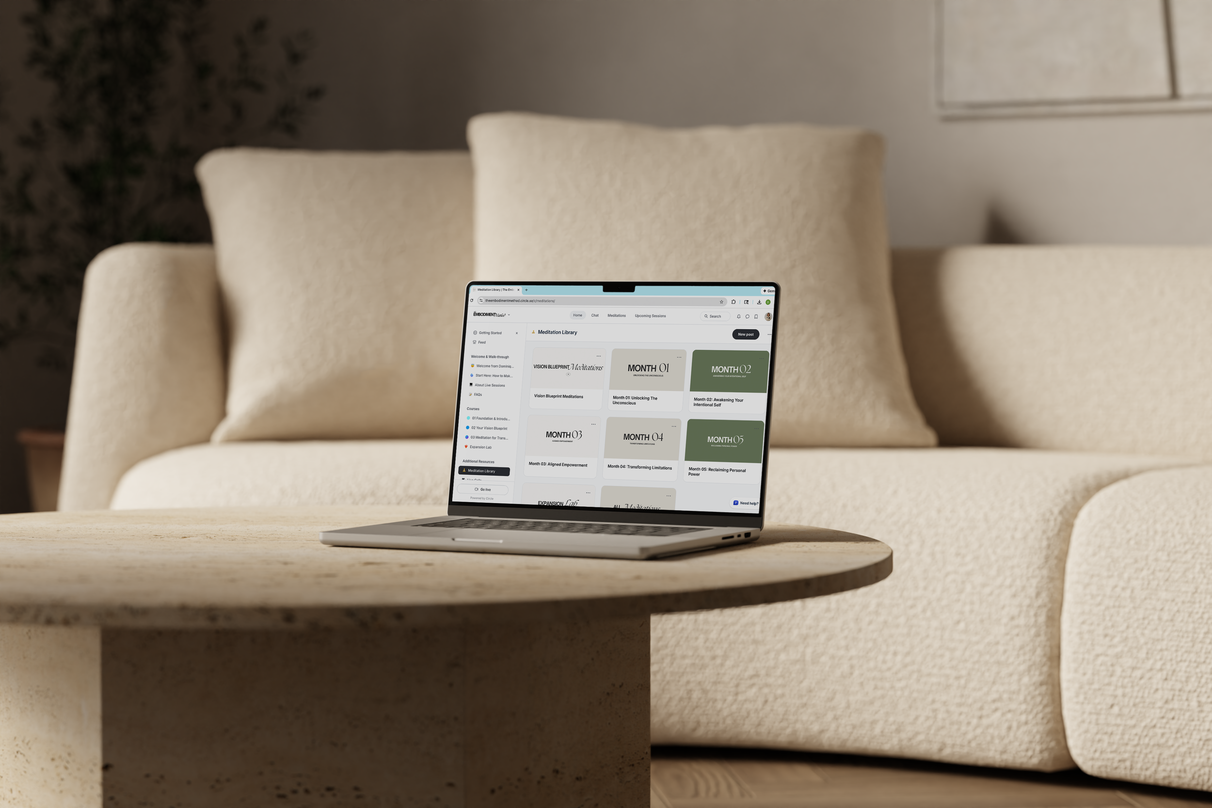 Access everything through your desktop or a downloadable app, making it easy to return to meditations, workshops, and practices wherever you are, and integrate the work into real life as it unfolds.