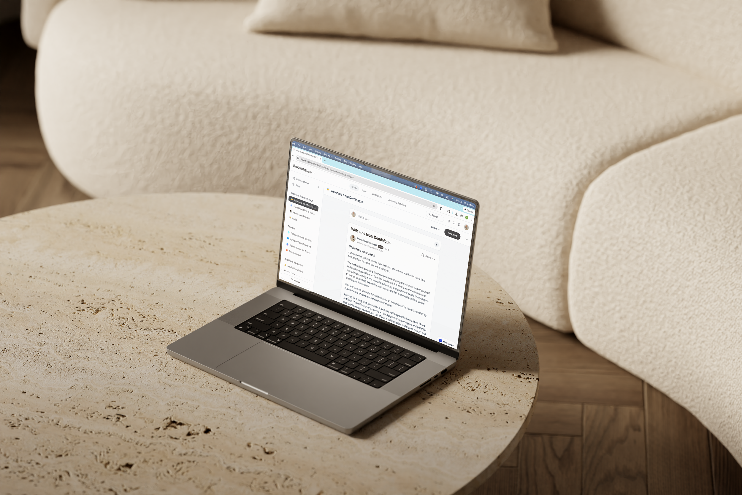 The Embodiment Method is primarily self-paced, with clear structure and guided pathways so you always know where to focus. There are live sessions you’re more than welcomed to join, but if that’s not available you’re supported in the platform through expert teachings, live session replays, and community access — without rigid schedules or pressure to “keep up.”
